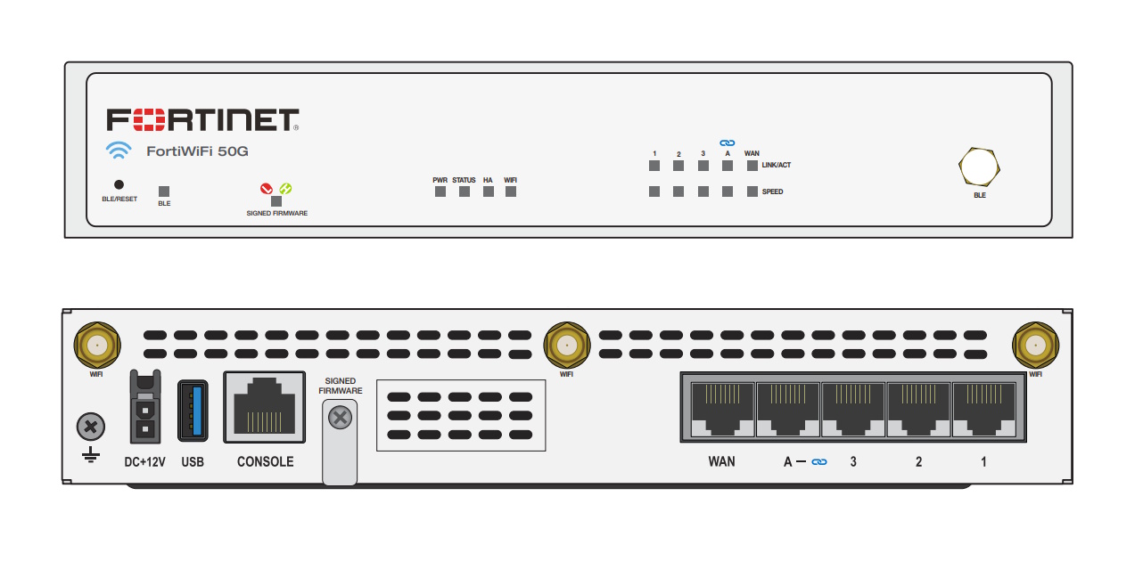 Equipped with a powerful FortiASIC SP5 processor, the FortiWiFi 51G achieves throughput rates of up to 2.25 Gbps while maintaining a low latency of just 2.42 μs. Its dual-band 802.11ax Wi-Fi technology allows for seamless connectivity on both 2.4 GHz and 5 GHz bands, catering to diverse networking needs. The device also includes external detachable antennas, enhancing its coverage and connectivity options. With cloud management capability, it simplifies device monitoring and security management, ensuring peace of mind for users.